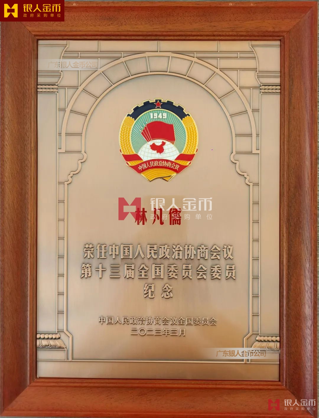 【受全國政協委托 頒發(fā)政協委員紀念牌】《榮任中國人民政治協商會議第十三屆全國委員會委員 紀念》