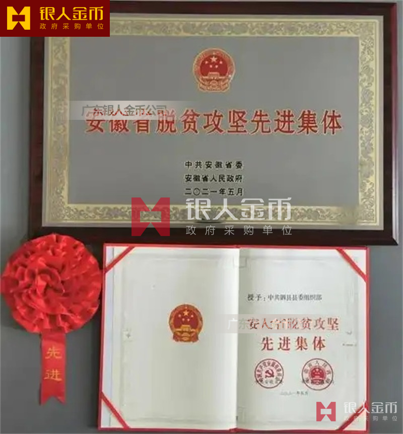 中共安徽省委、安徽省人民政府安徽省脫貧攻堅先進集體獎牌證書和先進個人獎?wù)伦C書(圖)