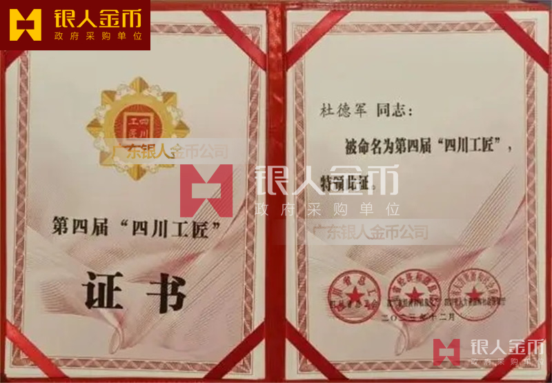 四川省人力資源和社會(huì)保障廳頒發(fā)四川工匠獎(jiǎng)?wù)聞渍滤拇üそ唱?jiǎng)牌證書(圖)