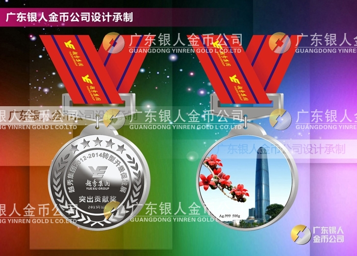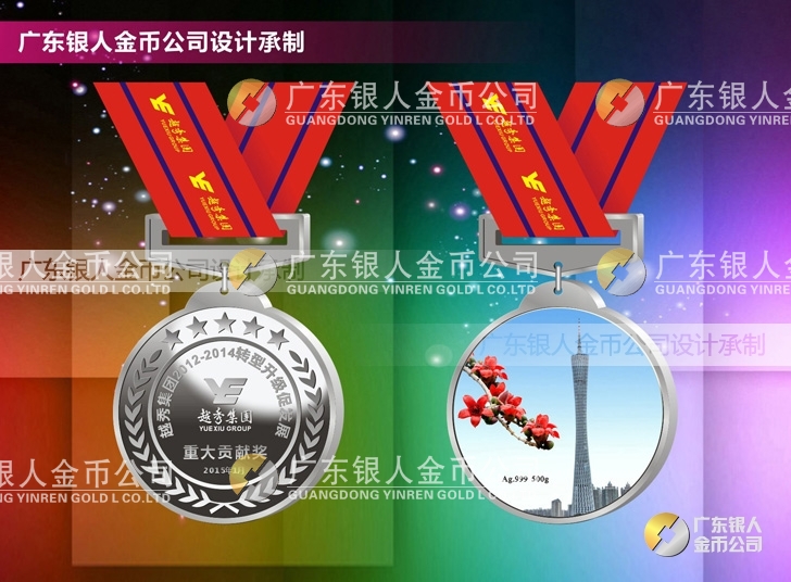 越秀集團定制純銀獎牌制作銀質獎章定制
