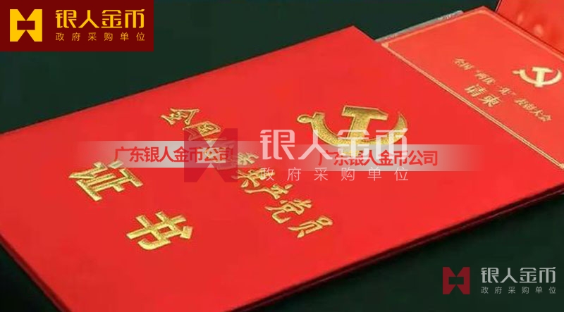 【證書制作】 廣東銀人金幣公司-榮譽(yù)證書制作廠家