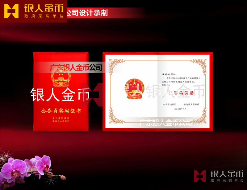 【公務員獎勵證書定制作】 榮譽證書制作、獎勵證書制作